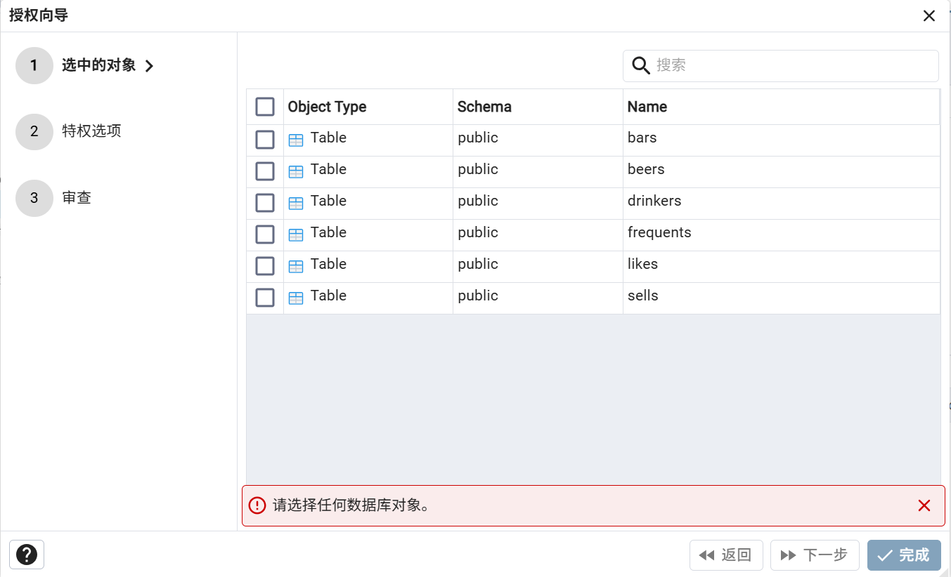 使用刚才所选受让人的账号登录系统, 测试是否能查询 bars 表中的数据.