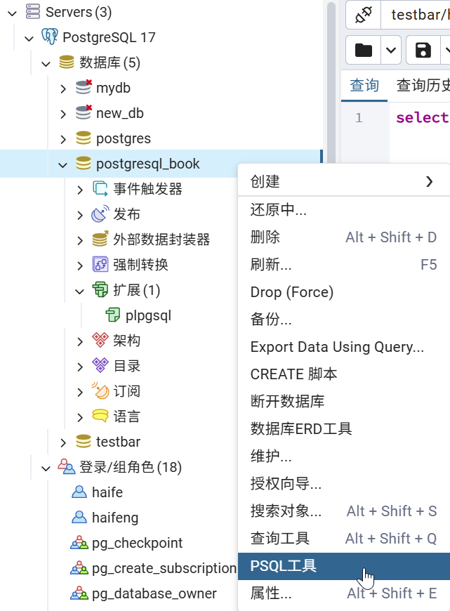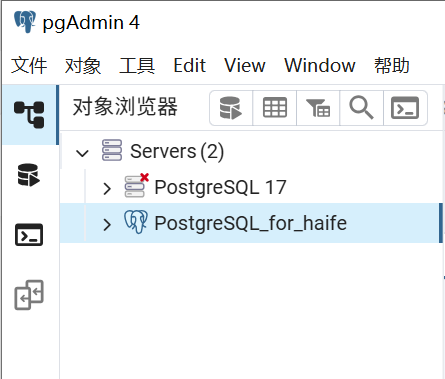 注意, 若点击的是 PostgreSQL 17, 按 Alt+Shift+N 则会打开注册服务器窗口.