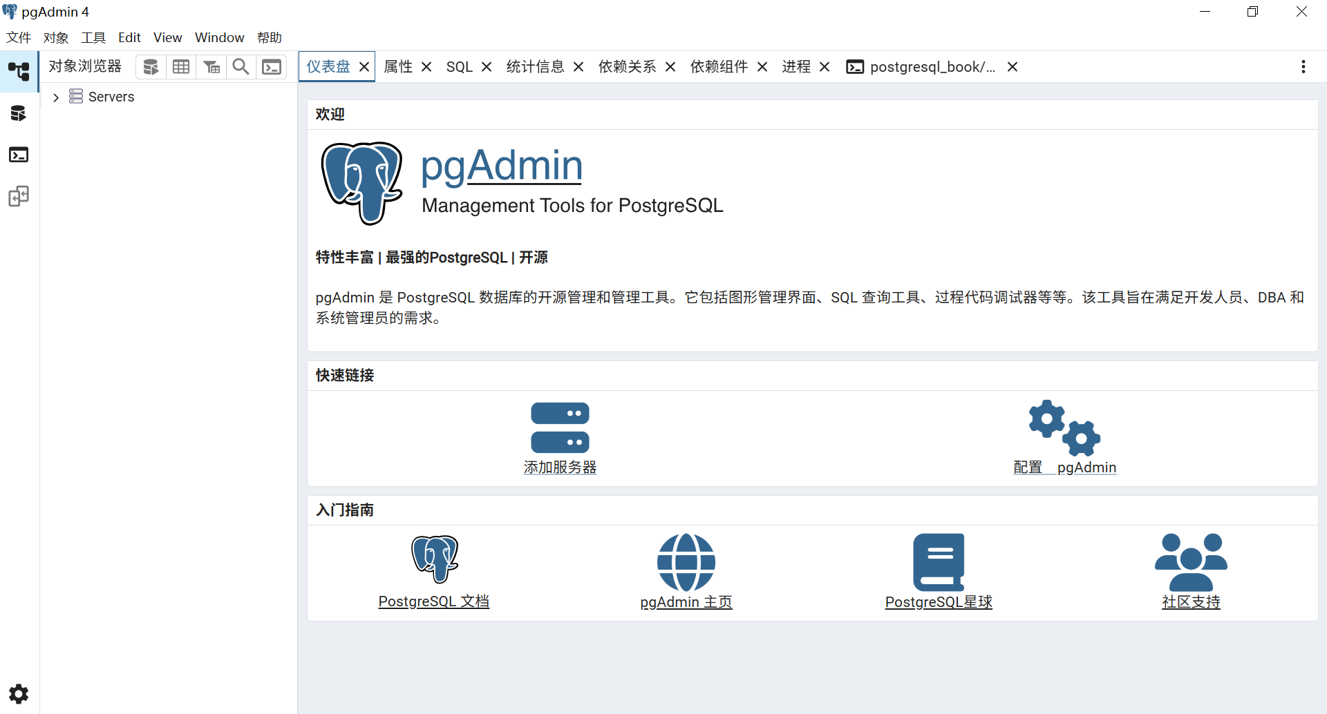 pgAdmin 是 PostgreSQL 官方的图形化管理工具, 目前的版本是 pgAdmin 4.
