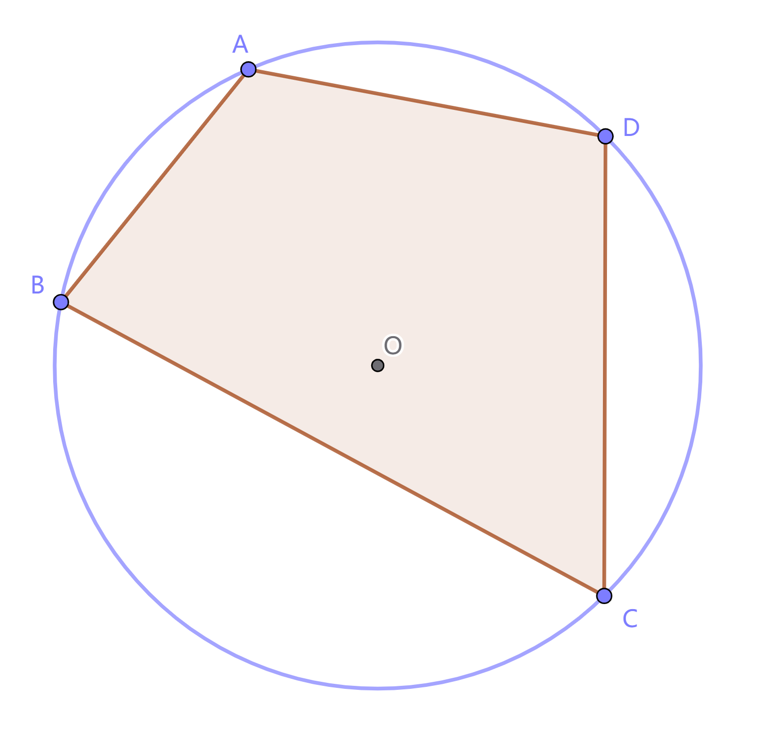 设 $ABCD$ 是圆 $O$ 的内接四边形, 四条边的长度分别为 $|AB|=a$, $|BC|=b$, $|CD|=c$, $|DA|=d$. 若 $p$ 是其周长的一半, 即 $p=\frac{1}{2}(a+b+c+d)$, 则 $ABCD$ 的面积为