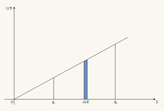 由题设 $V(t)\cdot S(t)=\text{const.}$, 因此 $1/V$ 和 $S$ 是线性关系, 如图.