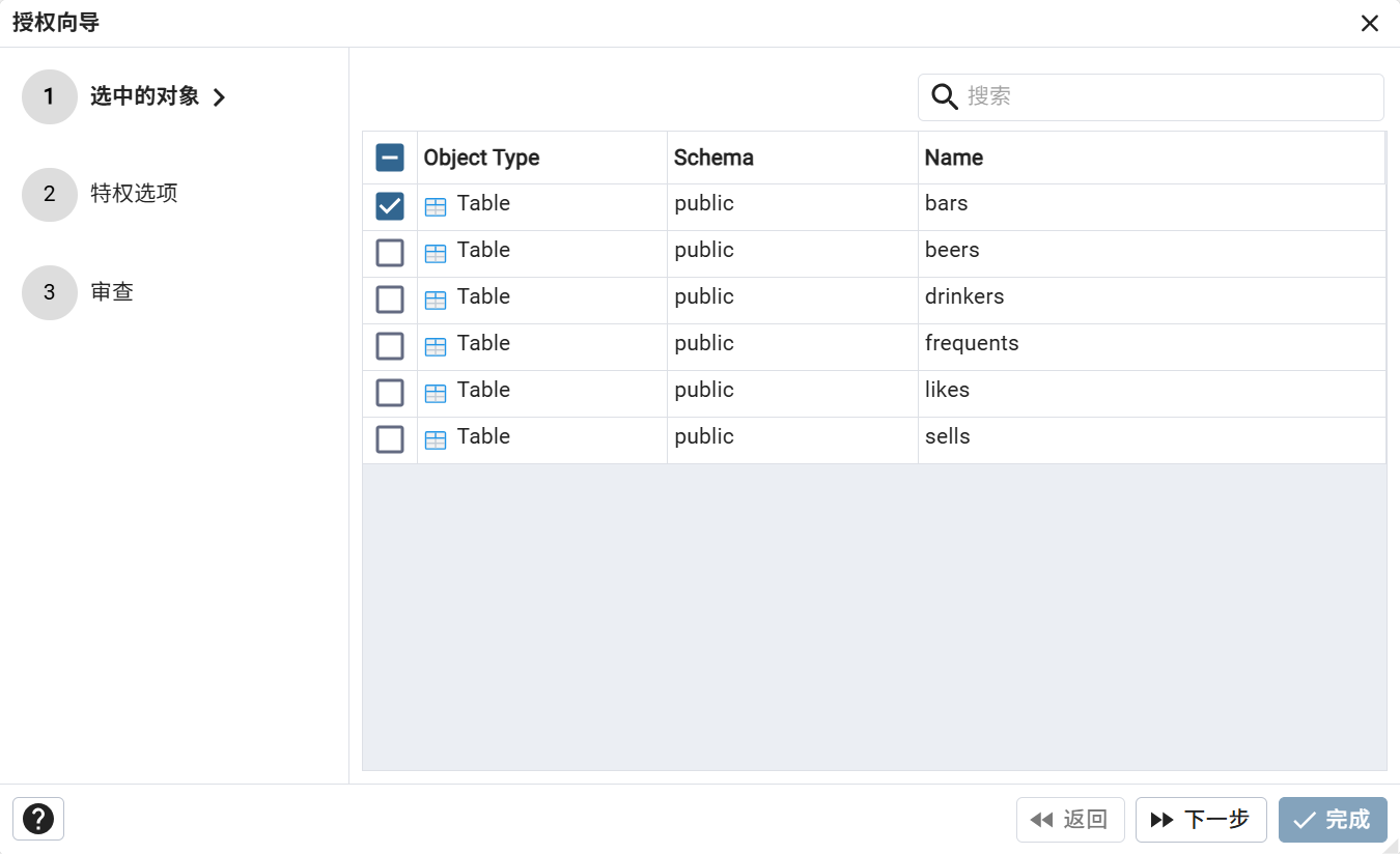 使用刚才所选受让人的账号登录系统, 测试是否能查询 bars 表中的数据.