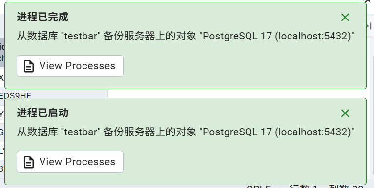 PS D:\work\cs\Database\postgres\testbar> pg_dump -U haife -d testbar -f testbar_20251013_GBK.sql --encoding=GBK --verbose pg_dump: 最后的内置 OID 是 16383 pg_dump: 读扩展 pg_dump: 识别扩展成员 pg_dump: 读取模式 pg_dump: 读取用户定义表 pg_dump: 读取用户定义函数 pg_dump: 读取用户定义类型 pg_dump: 读取过程语言 pg_dump: 读取用户定义聚集函数 pg_dump: 读取用户定义操作符 pg_dump: 读取用户定义的访问方法 pg_dump: 读取用户定义操作符集 pg_dump: 读取用户定义操作符 pg_dump: 读取用户定义的文本搜索解析器 pg_dump: 读取用户定义的文本搜索模板 pg_dump: 读取用户定义的文本搜索字典 pg_dump: 读取用户定义的文本搜索配置 pg_dump: 读取用户定义外部数据封装器 pg_dump: 读取用户定义的外部服务器 pg_dump: 正在读取缺省权限 pg_dump: 读取用户定义的校对函数 pg_dump: 读取用户定义的字符集转换 pg_dump: 读取类型转换 pg_dump: 读取转换 pg_dump: 读取表继承信息 pg_dump: 读取事件触发器 pg_dump: 查找扩展表 pg_dump: 正在查找关系继承 pg_dump: 正在读取感兴趣表的列信息 pg_dump: 在子表里标记继承字段 pg_dump: reading partitioning data pg_dump: 读取索引 pg_dump: 在分区表中标记索引 pg_dump: 读取扩展统计信息 pg_dump: 读取约束 pg_dump: 读取触发器 pg_dump: 读取重写规则 pg_dump: 读取策略 pg_dump: reading row-level security policies pg_dump: 读取发布 pg_dump: reading publication membership of tables pg_dump: reading publication membership of schemas pg_dump: 读取订阅 pg_dump: reading subscription membership of tables pg_dump: 正在读取大对象 pg_dump: 读取从属数据 pg_dump: 正在保存encoding = GBK pg_dump: saving "standard_conforming_strings = on" pg_dump: saving "search_path = " pg_dump: 创建TABLE "public.bars" pg_dump: 创建TABLE "public.beers" pg_dump: 创建TABLE "public.drinkers" pg_dump: 创建TABLE "public.frequents" pg_dump: 创建TABLE "public.likes" pg_dump: 创建TABLE "public.sells" pg_dump: 为表"public.bars"处理数据 pg_dump: 正在转储表"public.bars"的内容 pg_dump: 为表"public.beers"处理数据 pg_dump: 正在转储表"public.beers"的内容 pg_dump: 为表"public.drinkers"处理数据 pg_dump: 正在转储表"public.drinkers"的内容 pg_dump: 为表"public.frequents"处理数据 pg_dump: 正在转储表"public.frequents"的内容 pg_dump: 为表"public.likes"处理数据 pg_dump: 正在转储表"public.likes"的内容 pg_dump: 为表"public.sells"处理数据 pg_dump: 正在转储表"public.sells"的内容 pg_dump: 创建CONSTRAINT "public.bars bars_pkey" pg_dump: 创建CONSTRAINT "public.beers beers_name_key" pg_dump: 创建CONSTRAINT "public.drinkers drinkers_pkey" pg_dump: 创建CONSTRAINT "public.frequents frequents_pkey" pg_dump: 创建CONSTRAINT "public.likes likes_pkey" pg_dump: 创建CONSTRAINT "public.sells sells_pkey"