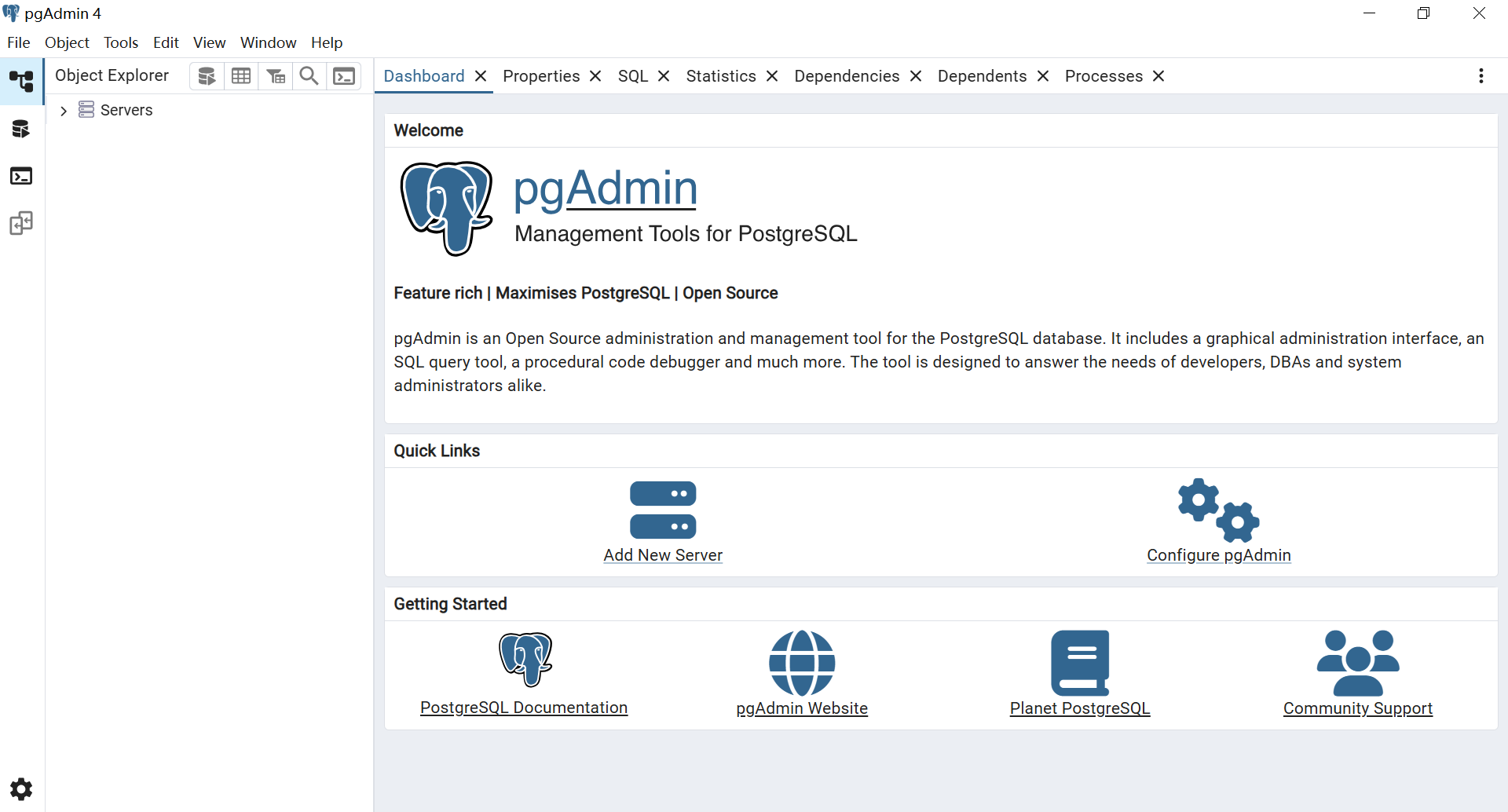 pgAdmin 是 PostgreSQL 官方的图形化管理工具, 目前的版本是 pgAdmin 4.