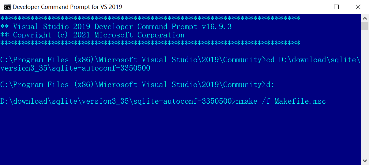D:\download\sqlite\version3_35\sqlite-autoconf-3350500>nmake /f Makefile.msc